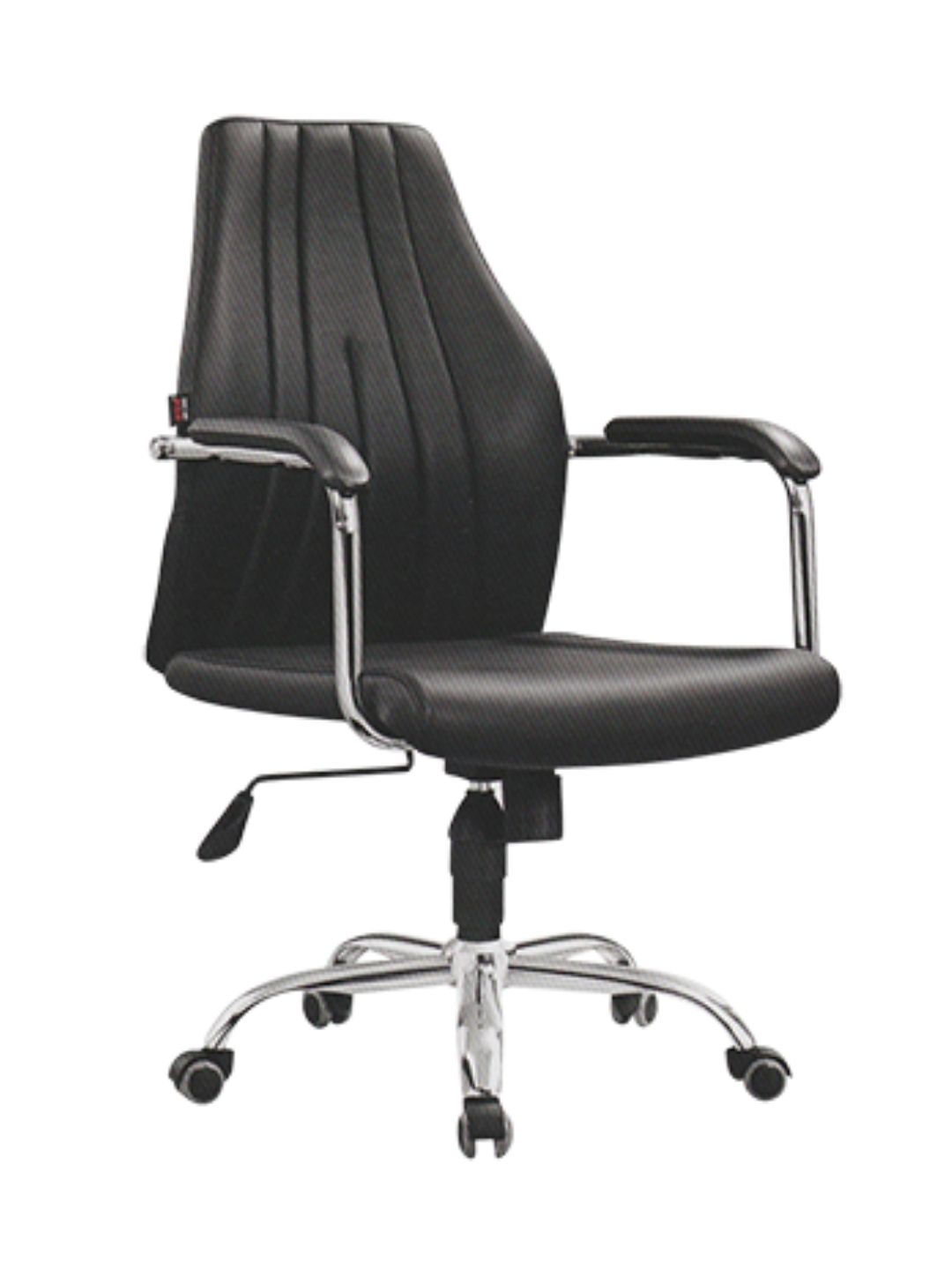 - Features: Medium Back Chair, Chrome Arm with PU Top, Swivel tilt, Gas Lift, Chrome Base